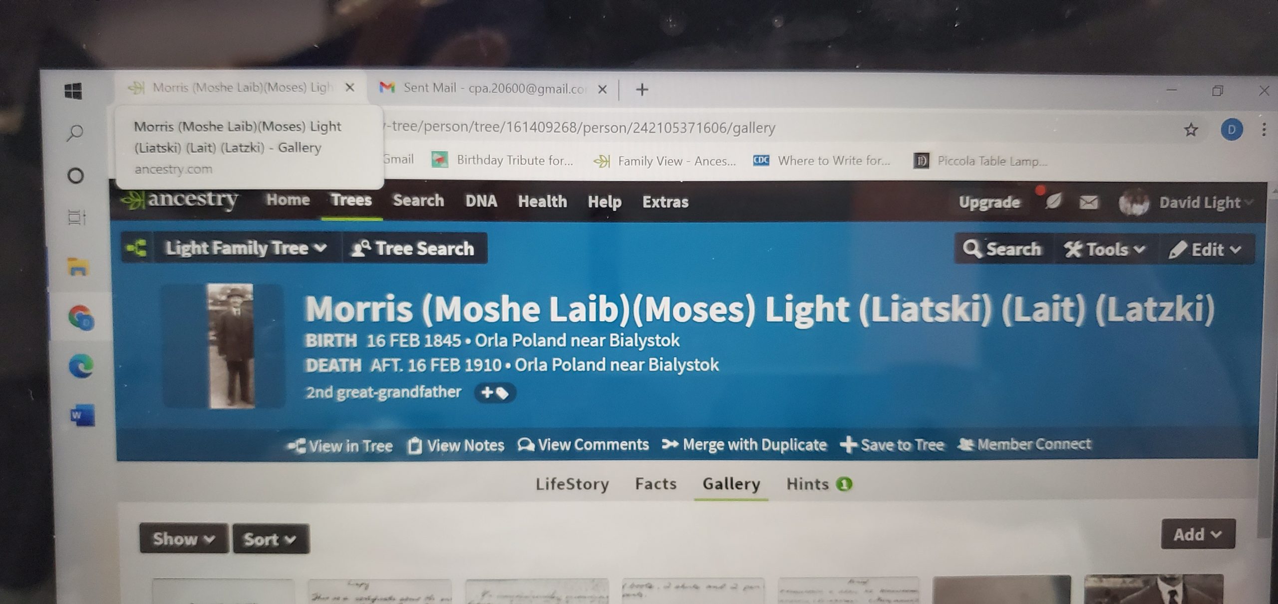 The one made specifically for Lazar (Lazarus Light my great grandfather) Liatsky was never found. We knew it existed but all of the relatives we asked knew of it but couldn’t find it. In 1990 or so a woman came into my brother’s place of business in Miami and said she was a Light and wanted to know if we were related. She came in a month later with a ripped family tree in a broken frame that her grand nephew had, Sure enough in Hebrew was a branch with my grandfather Philip Light’s name on it and that of his sisters born at the time the tree was dated. My aunt figured out how to decipher the tree and the way the offspring were listed in chronological order. Morris made great efforts to make these trees with letters requesting updates of the births subsequent to his emigration from New York back to Orla. The bottom of the tree in Hebrew is written for those that want to remember. I feel that I may be among the few that care.