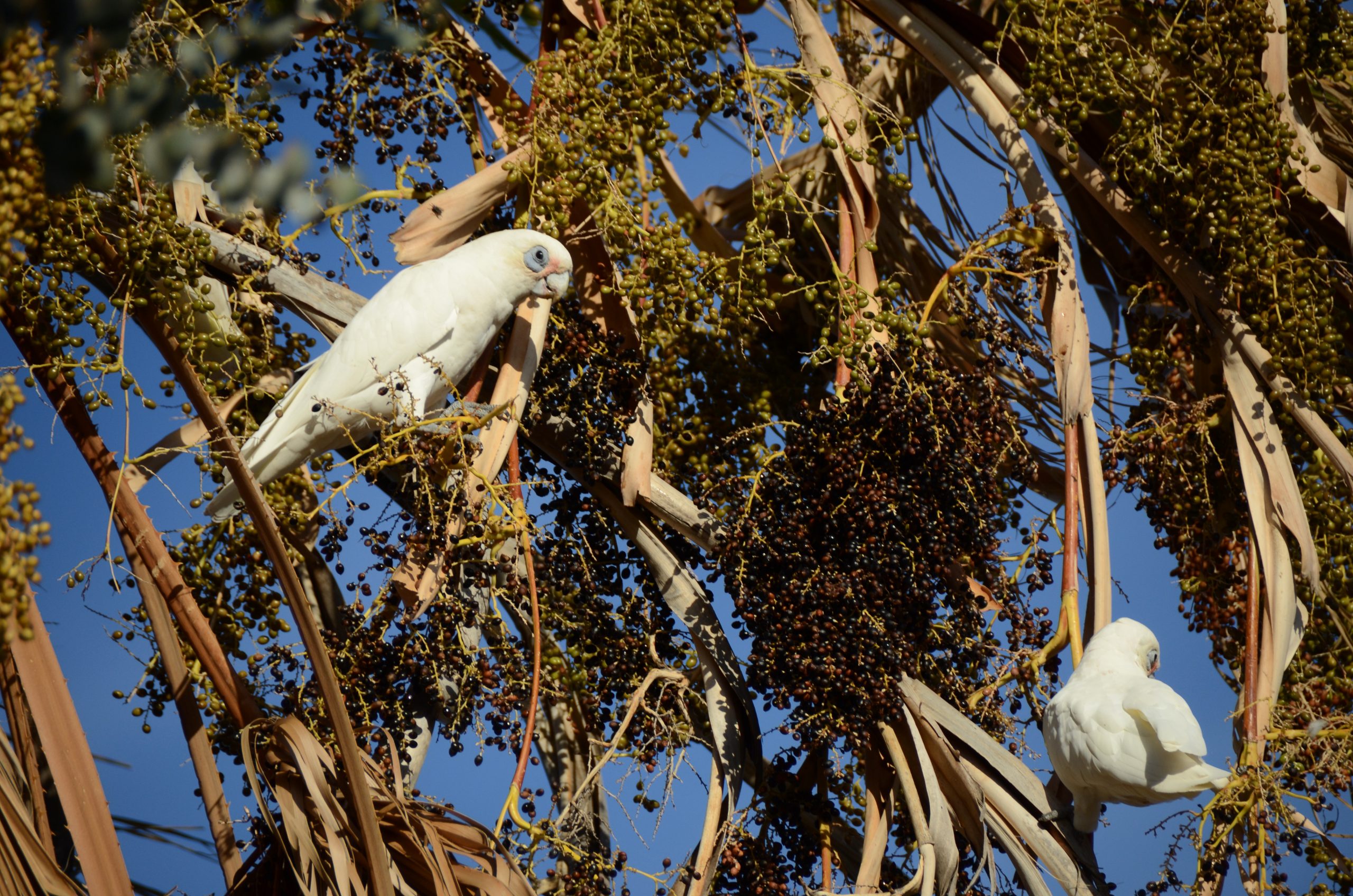 The cockatoos feed themselves