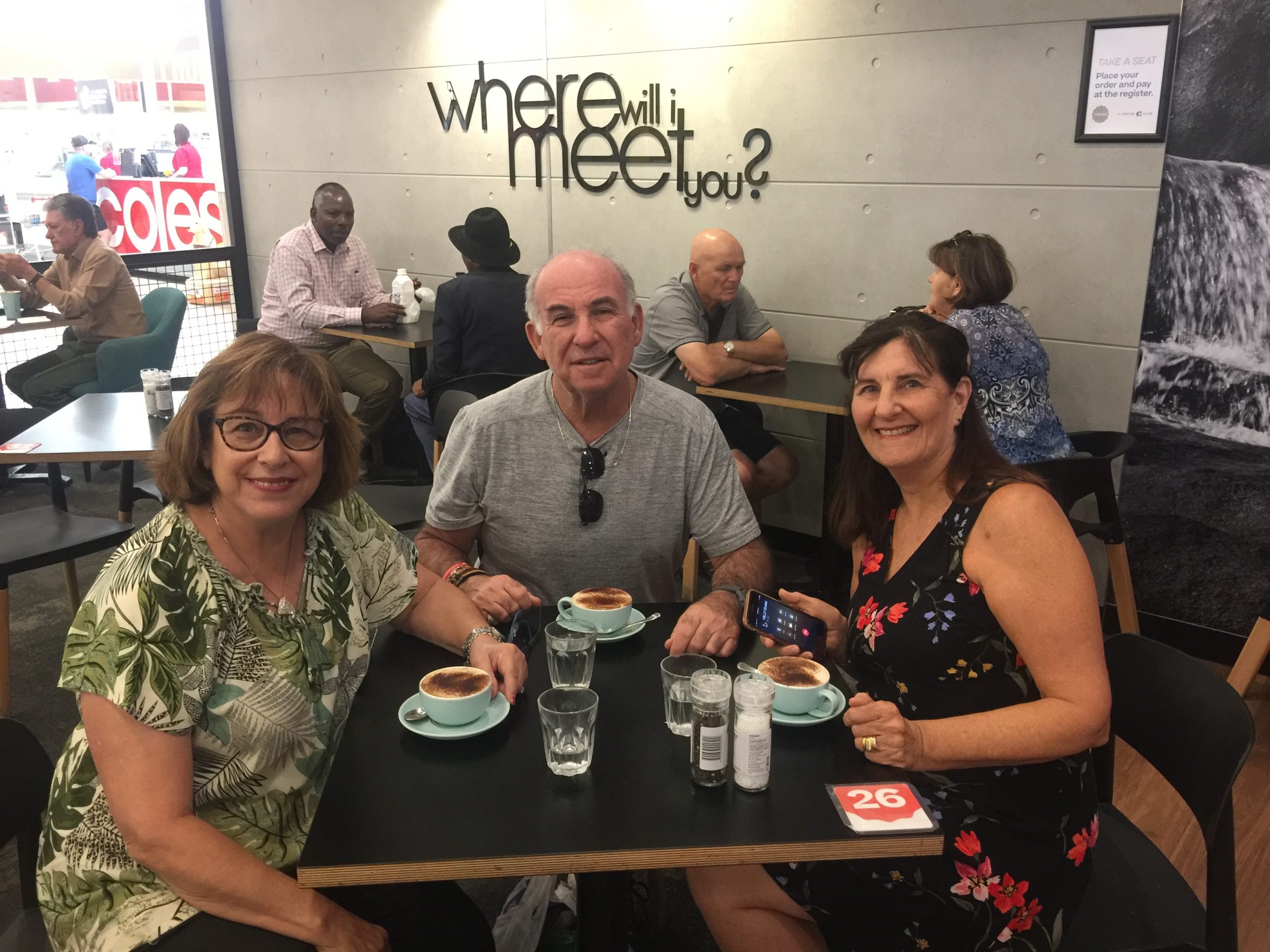 With Jill, and Pearl, my third cousin once removed.  Having coffee at a local shopping centre.