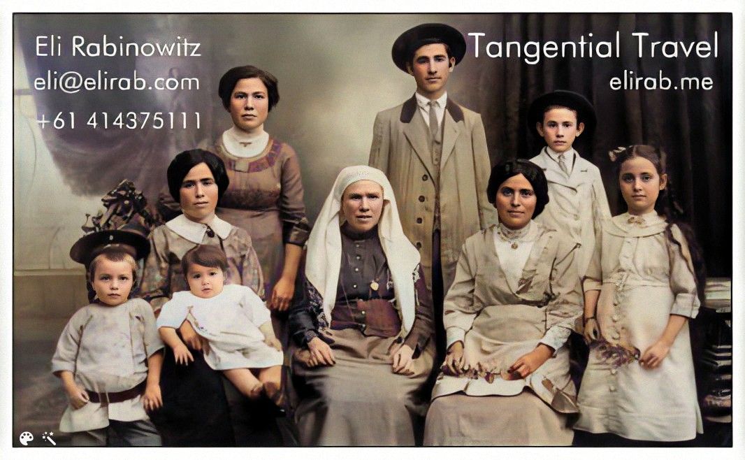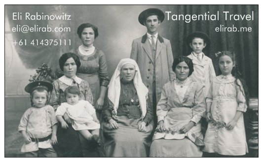 My business card with my Litvak Jerusalem family, who with me, are descendants of Tzoref, colorized, using MyHeritage’s new process.